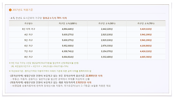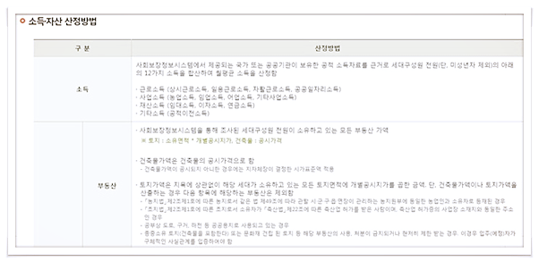 * 2016년 기준으로 부동산 21,550만원 이하, 저동차 2,767만원 이하