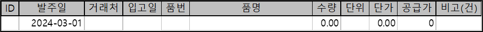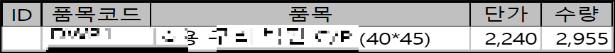 Raw_기말원재료재고 테이블은 상기와 같은 양식으로 구성되어 있으며, 현장으로부터 원재료 기말재고자료를 받아 상기 양식으로 가공하여 Raw_기말원재료재고 테이블에 저장하도록 한다. 이후에 원재료 평균단가입력을 통해 원재료 수불 절차를 수행해야 장부 자료가 정확하게 입력된다.