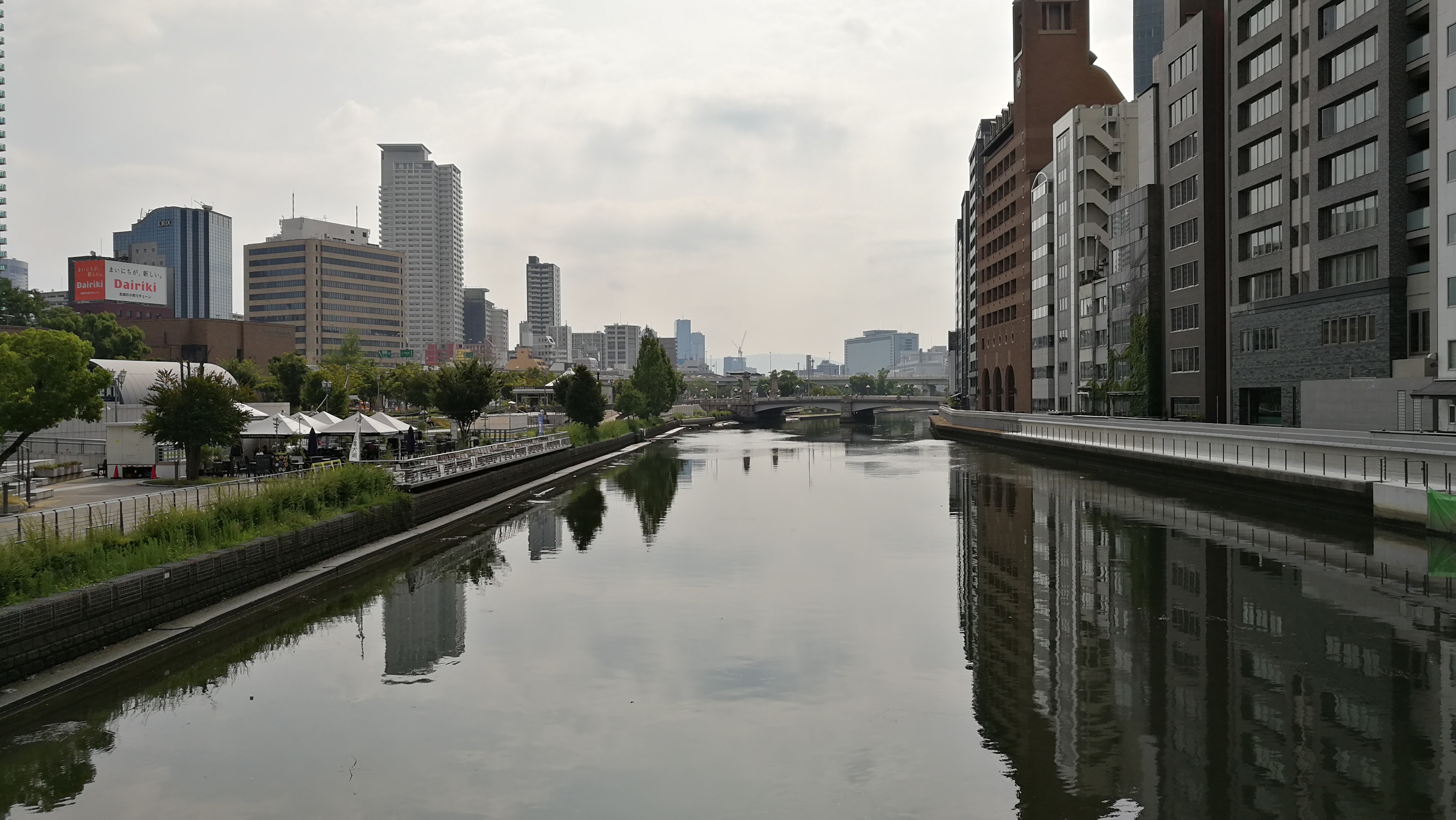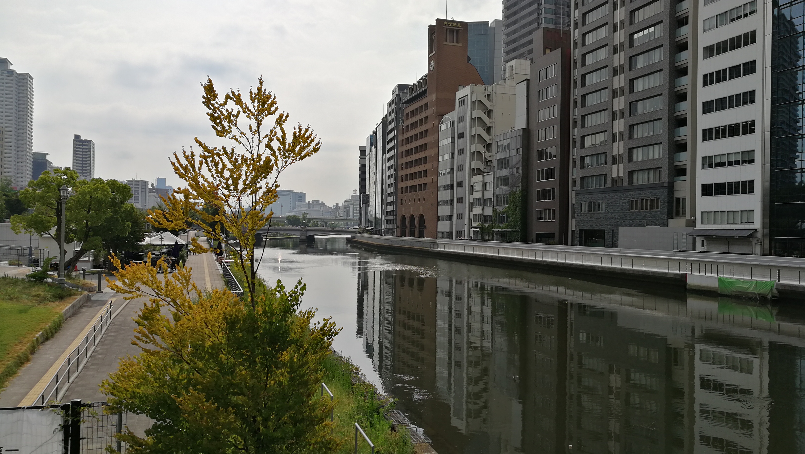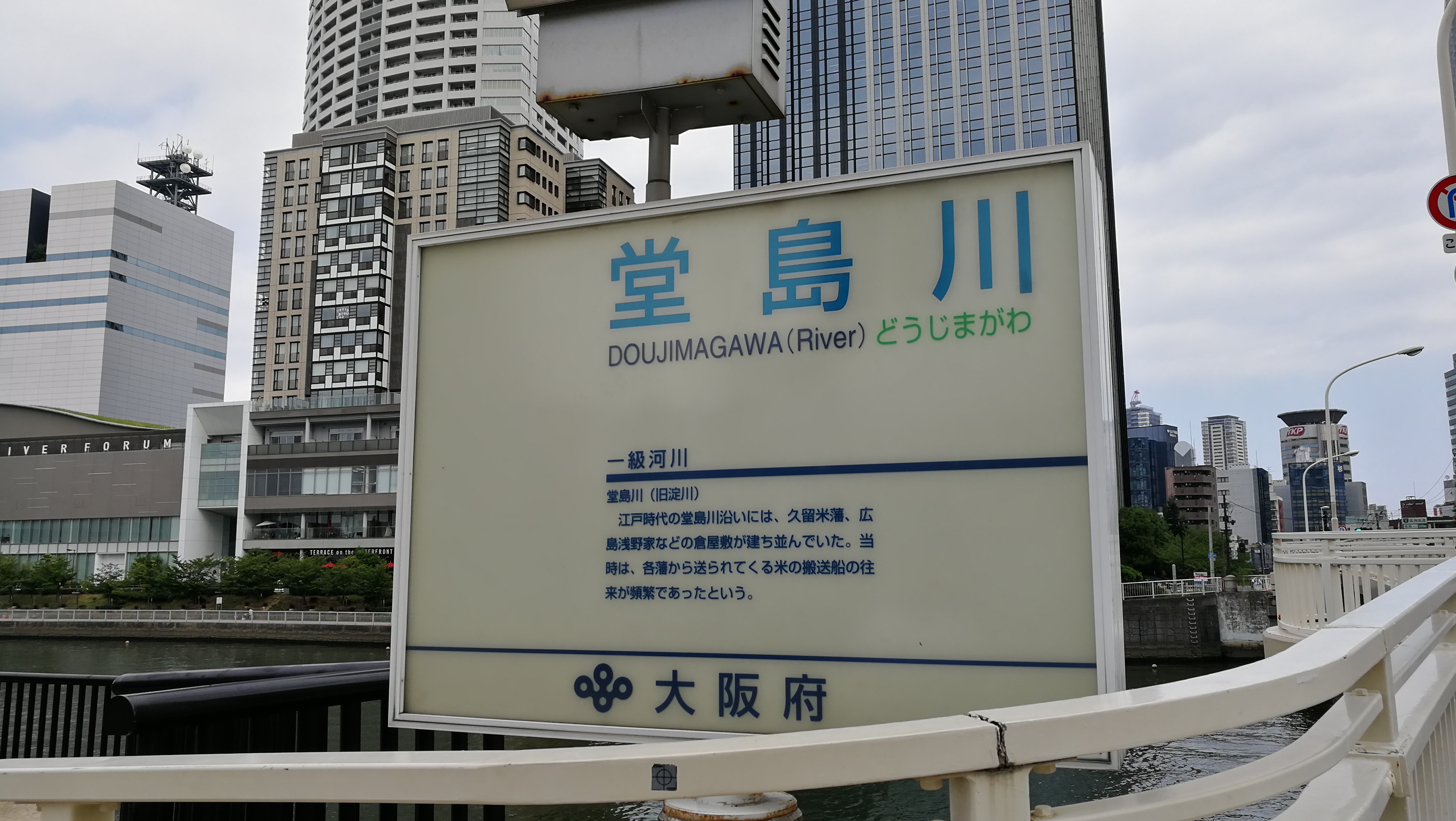 오사카시청과 중앙공회당 건물은 여의도와 같이 강 중간에 있는 섬에 지어진 건물이었는데, 오사카 증권거래소에 면한 도사보리강과 섬을 지나면 도지마강이 흐르고 있었다.