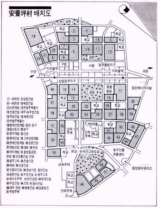 - 주거중심의 시가지로 개발하여 다양한 소득계층을 수용하되, 생활편익시설과 녹지공간이 충분히 확보된 쾌적한 도시환경을 조성하여 장래 인구 100만명 규모의 안양 대도시권의 신중심업무지역으로 기능할 수 있도록 계획하였다.
