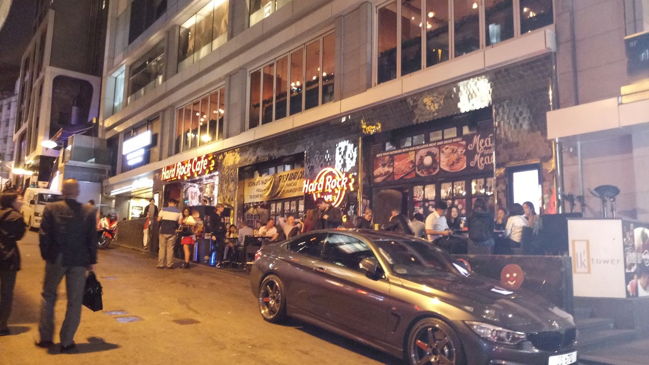 걸어다니다보니 저녁때가 되어 홍콩 센트럴지역에서 유명하다는 술집에 들어가서 식사와 술한잔을 하게 되었다. 3-4층정도 되는 위치에 야외에서 인근 번화가의 마천루들을 감상하며 술한잔하는 곳이었는데 외국인이 많이 있었다.