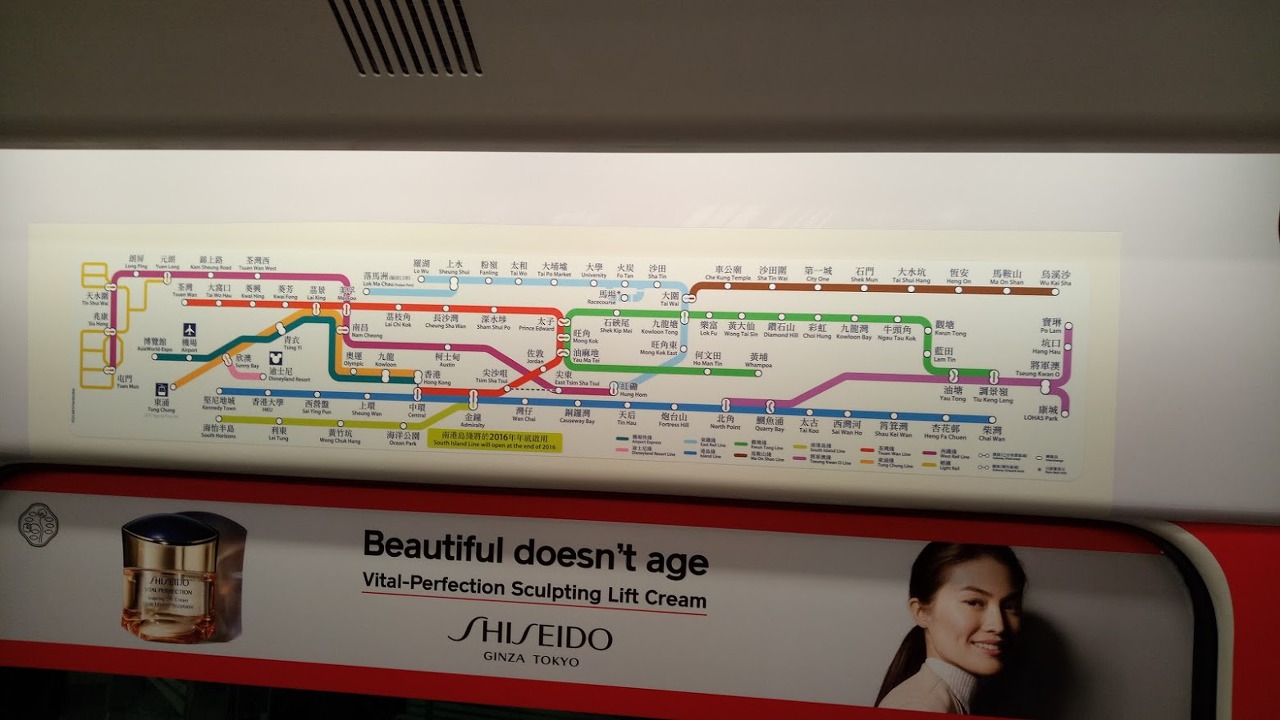 일단 홍콩 지하철 내부는 우리나라의 지하철과 달리 좌석이 많이 없었던 것 같고, 특이했던 점으로 기억남는 것이 USB 휴대폰 충전구멍이 뒷좌석에 있어서 굉장히 신기해 했던 기억이 있다. 지금이야 우리나라에서도 많이 보급이 되어 있지만 당시에는 휴대폰 충전기를 꺼내서 USB 구멍에 넣고 충전하면서 흡족했던 기억이 새롭다.